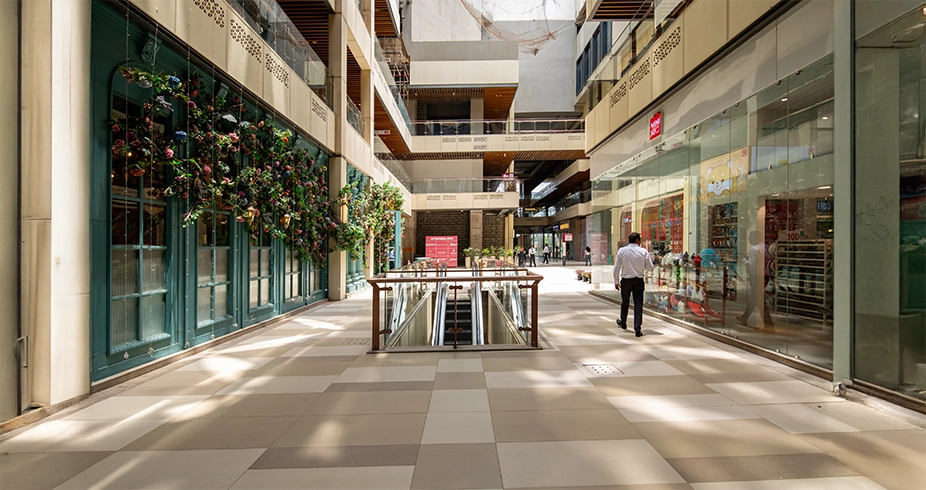 View exclusive AIPL Joy Central photos showcasing on-site development, shop interiors, layout renderings, and food court ambience.