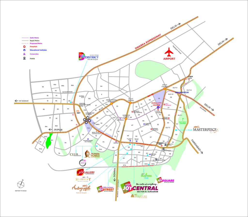 Yes, AIPL Joy Central Sector 65 Gurgaon is close to HUDA Metro Station (10 minutes) and will benefit from upcoming metro extensions.