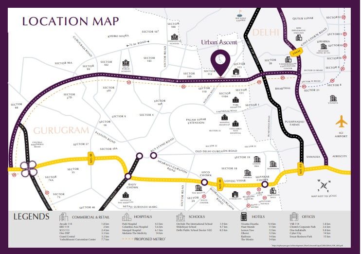 Sector 112, Gurgaon, has emerged as a highly sought-after location due to its strategic position along Dwarka Expressway and proximity to key commercial and residential hubs. The area offers excellent connectivity to Delhi, IGI Airport, Cyber City, and Udyog Vihar, making it ideal for professionals and frequent travelers. The locality hosts reputed schools, colleges, hospitals, shopping centers, and entertainment zones, ensuring a well-rounded lifestyle for residents of Emaar Urban Ascent Gurgaon.